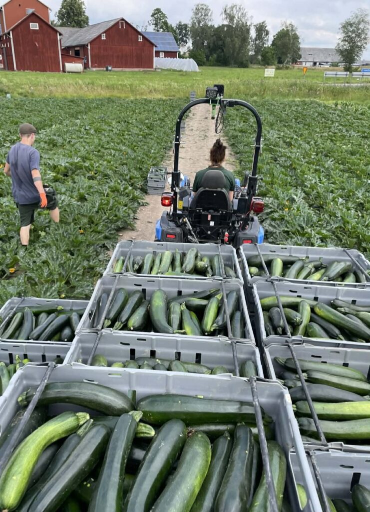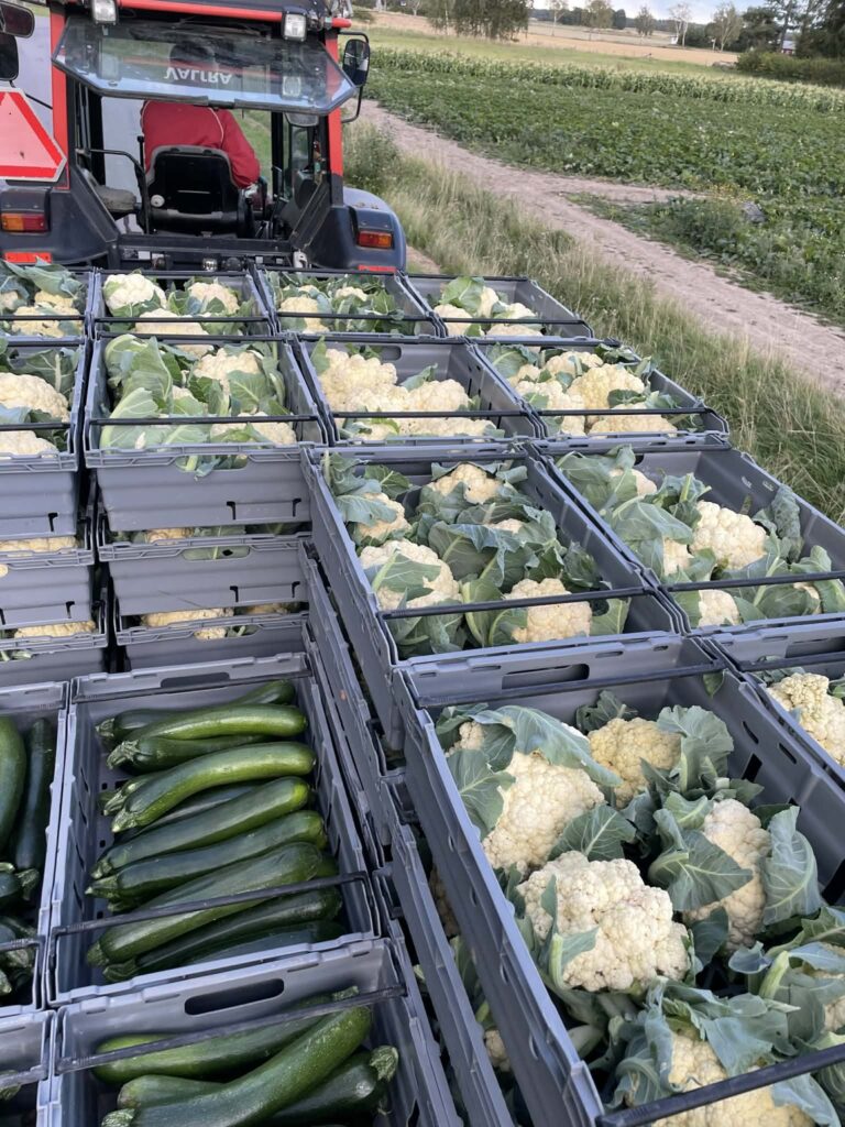 2024 – Då ärtorna inte levererade enligt plan så valde vi att trappa ner ärtorna och satsa på annat. Planen var istället att vi skulle köra på de grödor som funkat bäst för oss och som passar vår jord. Vi körde därför mycket mer kål än tidigare och dubbelt så mycket zucchini, samt massor av andra grönsaker. 2024 odlade vi 40 sorters frilandsgrönsaker och ett gäng grönsaker i vår nyköpta växttunnel.